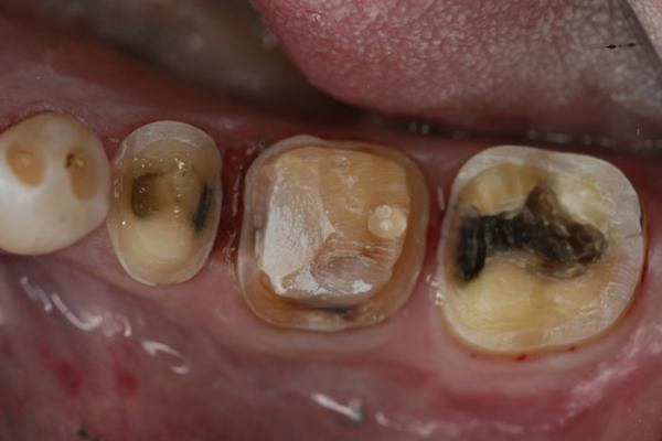 Stained and glazed CEREC® quadrant. #3, #4 are full coverage CEREC® crowns done in 90 minutes complete. |